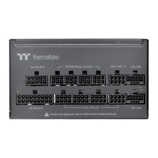 Formát zdroja:ATX; Konektory:8pin CPU 1x, 8pin CPU 2x, PCIe 6-pin, PCIe 8-pin, PCIe 16-pin Gen5, SATA 15-pin, Molex; Konektory pre základnú dosku:ATX 24-pin, EPS 8-pin; Vlastnosti zdroja:Modulárna kabeláž.