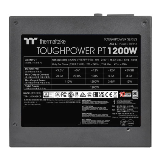 THERMAL TAKE zdroj 1200W Toughpower PT, 120mm, Plně modulární, 80+ Platinum, černá