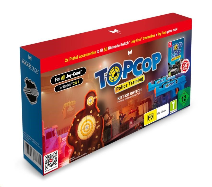 Top Cop: Police Training je ultimátna arkádová streľba, ktorá vdychuje život akcii z reálneho sveta! Top Cop je duchovný nástupca hry Mad Bullets a kombinuje bláznivo rýchlu hrateľnosť s presným sledovaním cieľov a vylepšeným zamierením – a teraz je podmanivejší než kedykoľvek predtým vďaka dvom farebným zbraniam navrhnutým pre vaše ovládače Nintendo Switch™ Joy-Con.