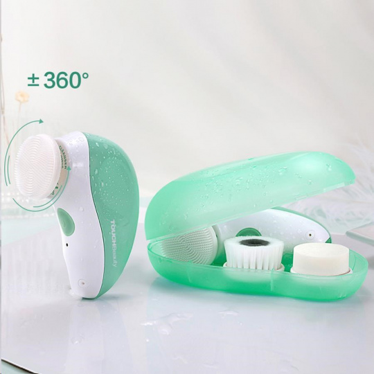 TOUCHBeauty 1387 cestovná čistiaca kefka na pleť 3 v 1 zelená
