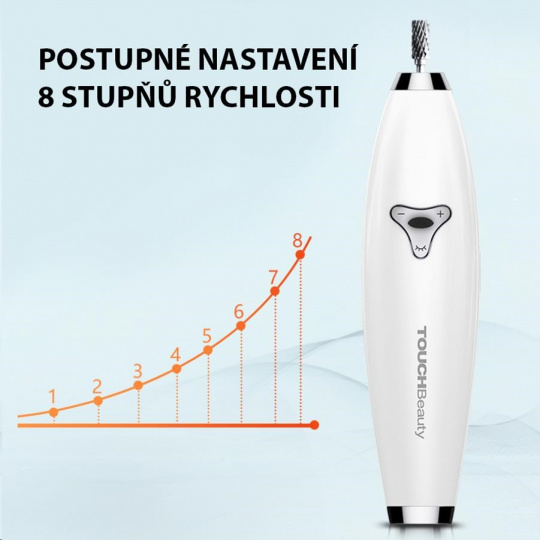 Osem nastaviteľných rýchlosťí, ktoré vyhovujú všetkým potrebám manikúry a pedikúry.