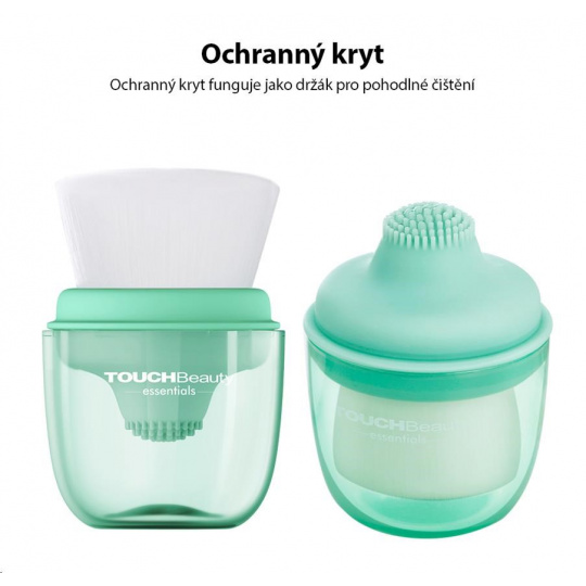 Obojstranná kefka TOUCHBeauty 1762 je ideálny pomocník pre čistenie pleti (nielen) na cestách. Z jednej strany ponúka kefku s dokonca 350 000 ultra jemnými štetinkami pre čistenie tváre a pre hĺbkové čistenie, z druhej strany silikónovú kefku v tvare kvapky, ktorá bola špeciálne navrhnutá pre čistenie tváre a čela. Dômyselná konštrukcia umožňuje používať úložný kryt aj ako stojan pre kefku. Zároveň ho na cestách perfektne chráni.