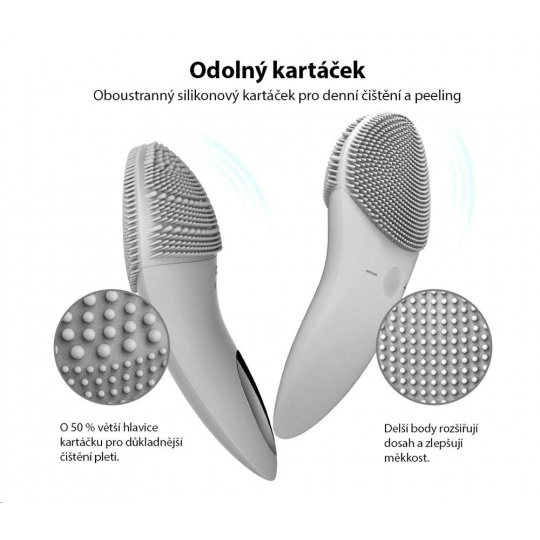 Každodenná čistiace plocha je vybavená jemnými silikónovými dotykovými bodmi, ktoré čistia tvár bez poškodenia pokožky.