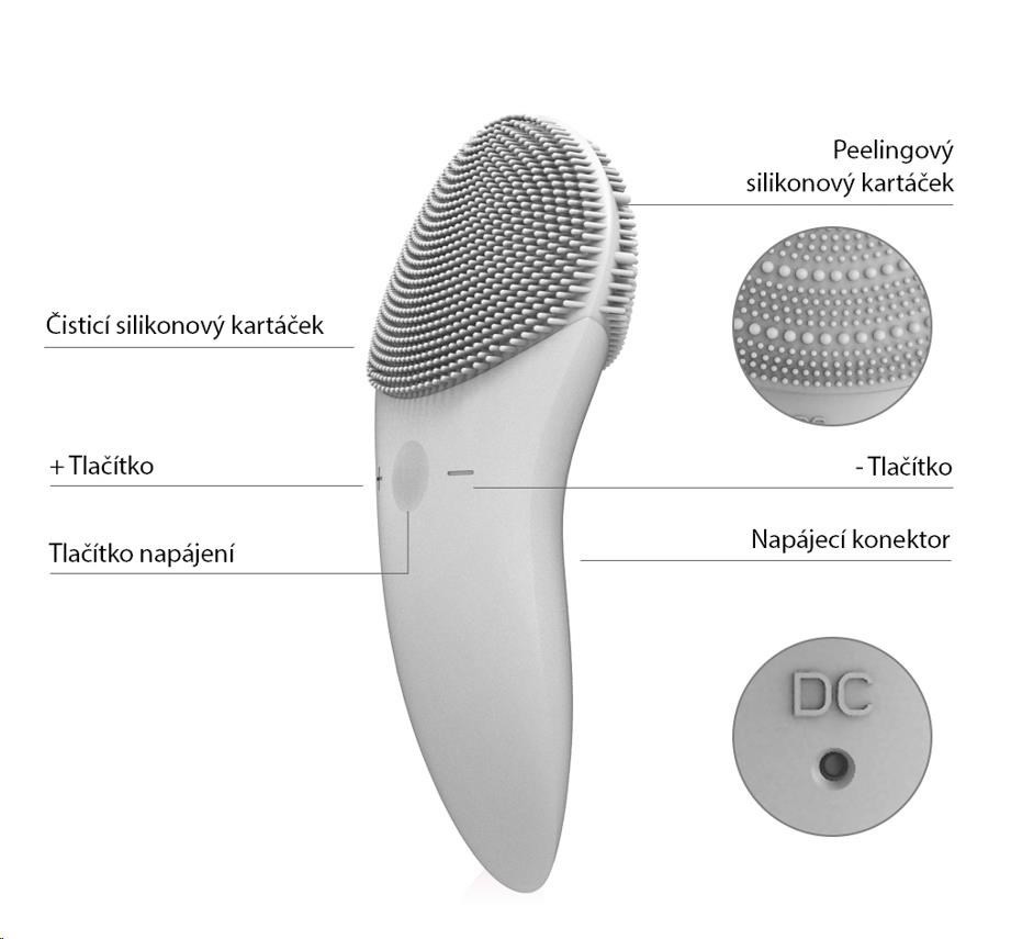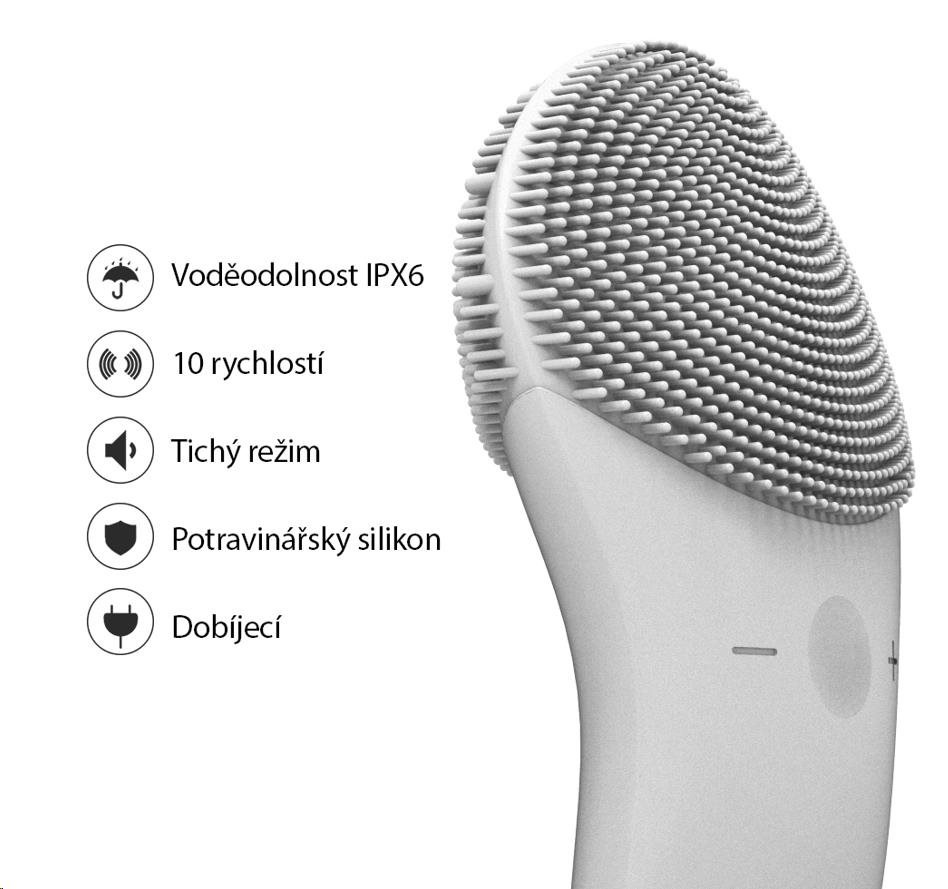 Každodenná čistiace plocha je vybavená jemnými silikónovými dotykovými bodmi, ktoré čistia tvár bez poškodenia pokožky.