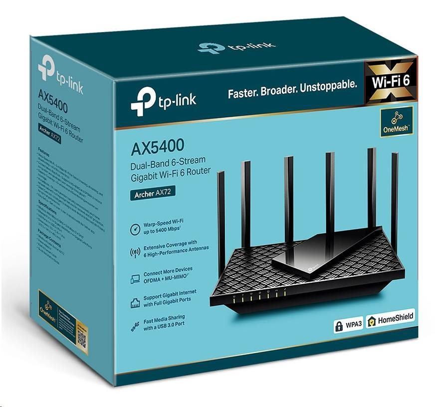 .TP-Link Archer AX72 OneMesh/EasyMesh WiFi6 router (AX5400, 2,4GHz/5GHz, 4xGbELAN,1xGbEWAN, 1xUSB3.0)