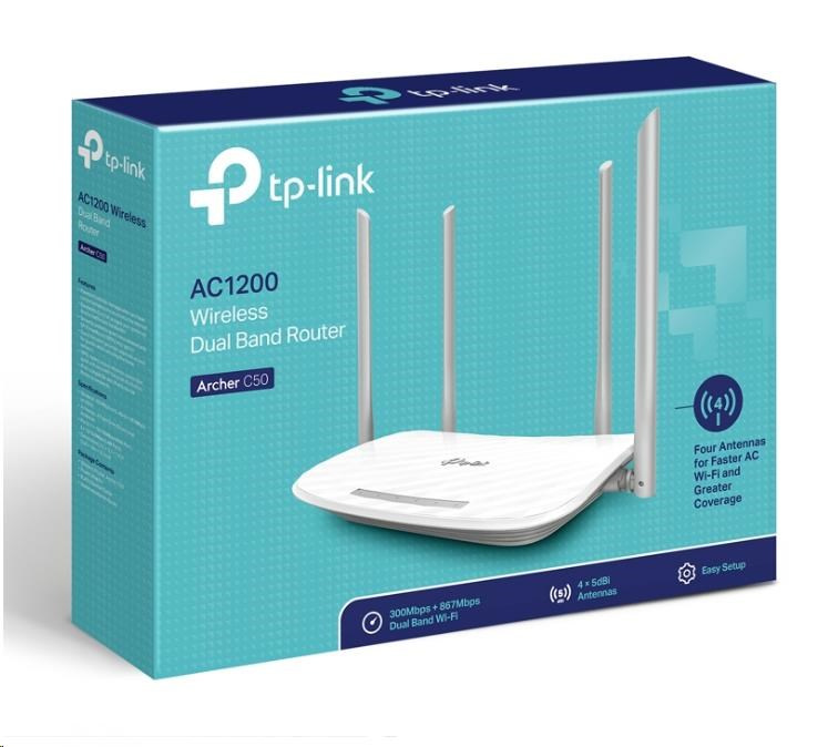 .TP-Link Archer C50 WiFi5 router (AC1200, 2,4GHz/5GHz, 4x100Mb/s LAN, 1x100Mb/s WAN)