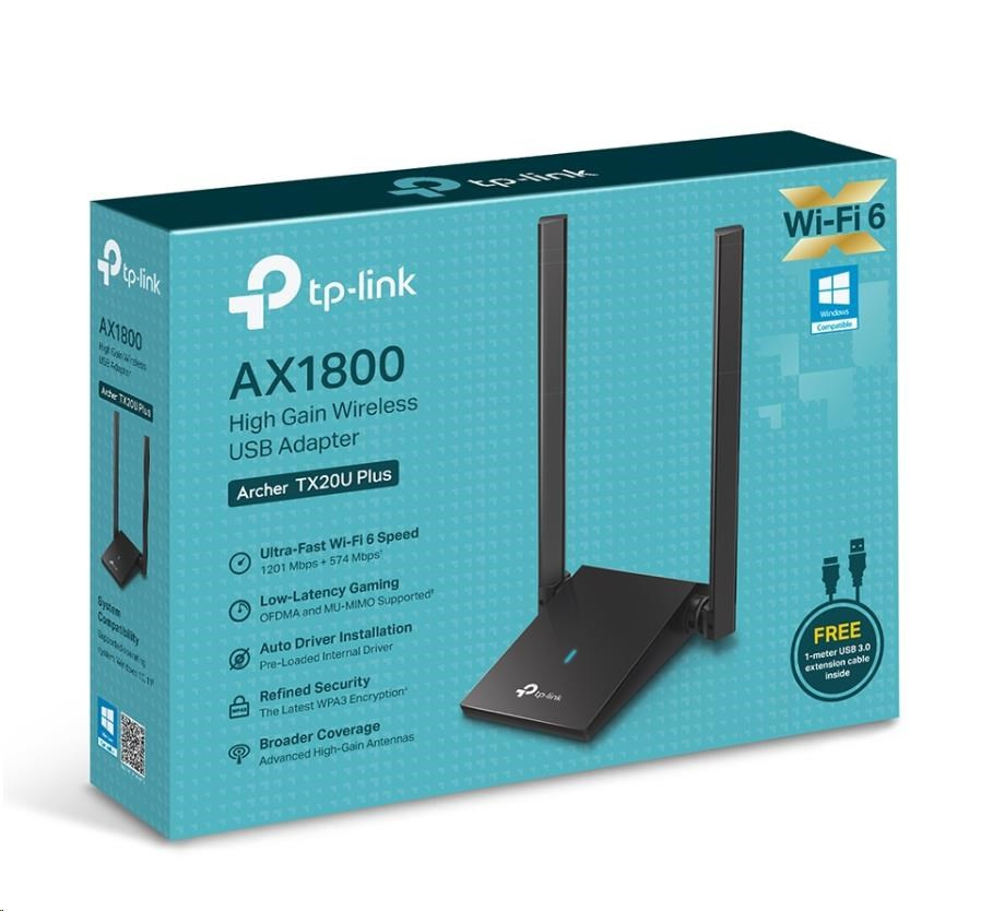 | Obsah balenia | AX1800 Dual Antennas High Gain Wireless USB Adapter Archer TX20U Plus Rýchly inštalačný sprievodca 1-meterové USB 3.0 kábel |