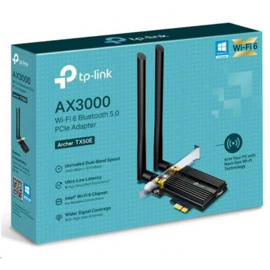 .TP-Link Archer TX50E WiFi6 PCIe adapter (AX3000,2,4GHz/5GHz,Bluetooth5.0)