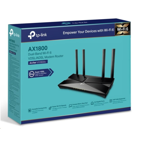 TP-Link Archer VX1800v EasyMesh WiFi6 VDSL/ADSL router (AX1800,2,4GHz/5GHz,3xGbELAN,1xGbELAN/WAN,2xRJ11,4G LTE,1xUSB2.0)