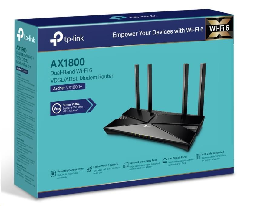 TP-Link Archer VX1800v EasyMesh WiFi6 VDSL/ADSL router (AX1800,2,4GHz/5GHz,3xGbELAN,1xGbELAN/WAN,2xRJ11,4G LTE,1xUSB2.0)