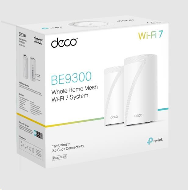 .TP-Link Deco BE65(2-pack) WiFi7 Mesh(BE9300,2,4GHz/5GHz/6GHz,4x2,5GbELAN/WAN, 1xUSB3.0)
