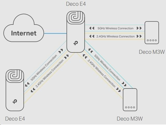 - Deco E4 poskytuje rýchle a stabilné spojenie rýchlosťou až 867 Mb/s a spolupracuje s hlavnými poskytovateľmi internetových služieb (ISP) a modemom.