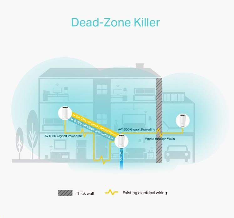 Deco P9 kombinuje duálne Wi-Fi a powerline pre vytvorenie silnejšej mesh siete. Technológia Powerline využíva elektrické rozvody vášho domu na vytvorenie silnejšieho prepojenia medzi jednotkami Deco tým, že znižuje dopad stien a iných prekážok na signál a poskytuje ešte vyššie rýchlosti siete a naozaj bezproblémové pokrytie .