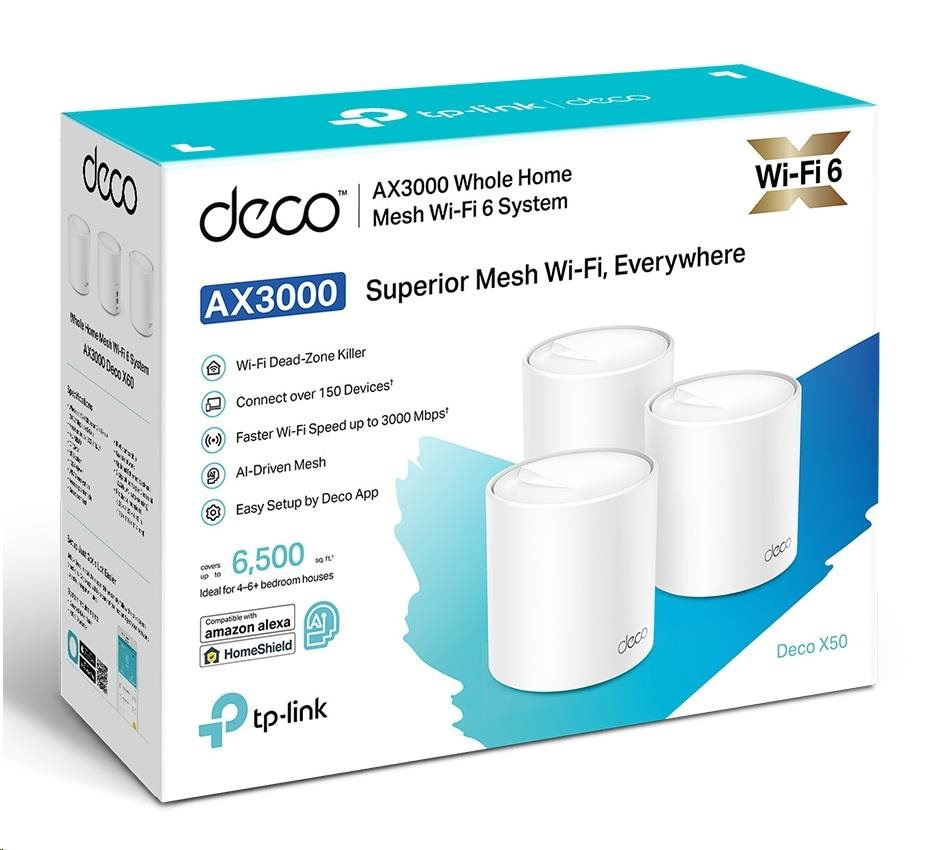 .TP-Link Deco X50(3-pack) WiFi6 Mesh (AX3000,2,4GHz/5GHz,3xGbELAN/WAN)
