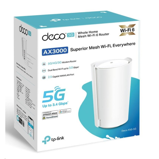 .TP-Link Deco X50-5G (1-pack) WiFi6 Mesh (AX3000,2,4GHz/5GHz,1x2,5GbELAN/WAN,2xGbELAN/WAN,4G LTE,5G,+1xnanoSIM)