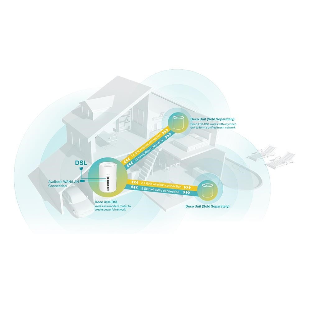 .TP-Link Deco X50-DSL WiFi6 Mesh (AX3000,2,4GHz/5GHz,4xGbELAN/WAN,1xDSL Port (VDSL2/ADSL2+/ADSL2/ADSL)