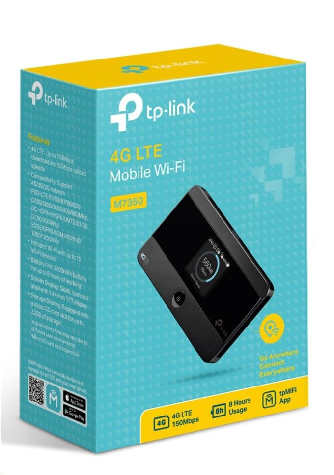 .TP-Link M7350 přenosný WiFi4 router (4G LTE, 2,4GHz, 1xmicroUSB, 1xSIM, 1xmicroSD)