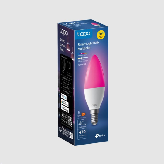 .TP-Link Tapo L430C chytrá WiFi stmívatelná LED žárovka (barevná,2500K-6500K,470lm,2,4GHz,E14)