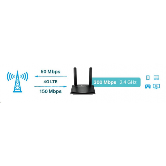 .TP-Link TL-MR100 WiFi4 router (N300, 4G LTE, 2,4GHz, 1x100Mb/s LAN, 1x100Mb/s LAN/WAN, 1xmicroSIM)