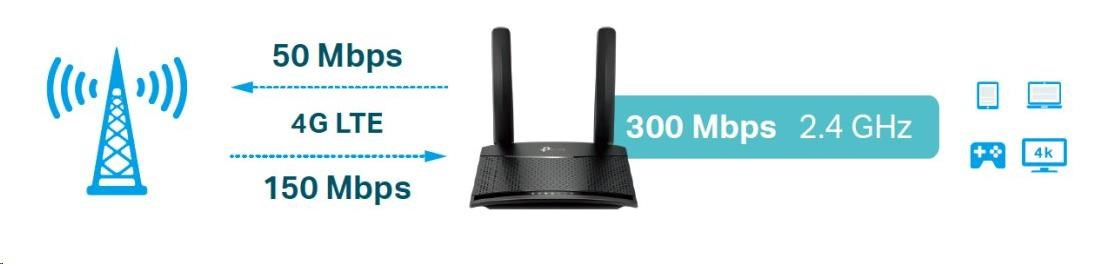 .TP-Link TL-MR100 WiFi4 router (N300, 4G LTE, 2,4GHz, 1x100Mb/s LAN, 1x100Mb/s LAN/WAN, 1xmicroSIM)