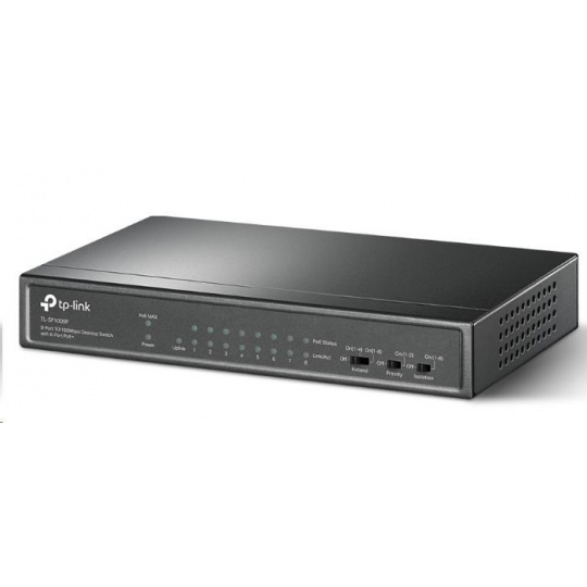 .TP-Link CCTV switch TL-SF1009P (8x100Mb/s, 1x100Mb/s uplink, 8xPoE+, 65W, fanless)