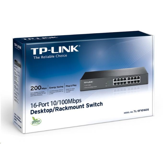 Switch TL-SF1016DS Fast Ethernet predstavuje výkonnú, cenovo dostupnú, ľahko použiteľnú, bezproblémovú a štandardnú možnosť upgrade staršej siete na sieť s rýchlosťou 1 000 Mbit/s. Všetkých 16 portov podporuje funkciu Auto MDI/MDIX, vďaka čomu sa nemusíte starať o príslušný typ kábla – stačí zapojiť a používať. Navyše s inovativnou technológiou úspory energie dokáže zariadenie TL-SF1016DS znížiť spotrebu energie až o 25 %; 80 % obalového materiálu je možné recyklovať. To všetko z týchto zariadení robí ekologické riešenie pre vašu firemnú sieť.