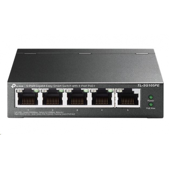 TP-Link Easy Smart switch TL-SG105PE (5xGbE, 4xPoE+, 65W, fanless)