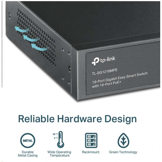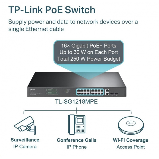 TP-Link CCTV Easy Smart switch TL-SG1218MPE (16xGbE, 2xGbE/2xSFP combo, 16xPoE+, 250W)