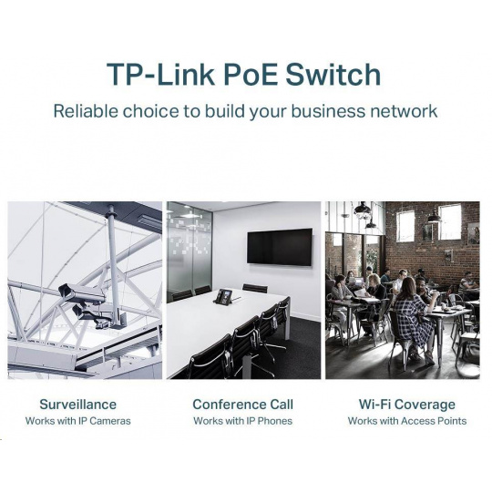 Vyhovuje štandardu 802.3af/at PoE+, ktorý podporuje až 30 W na každom portu PoE. Celkový rozpočet napájania 250 W PoE pre 16 gigabitových portov PoE+ umožňuje široké možnosti využitia, napríklad pre dohľadové systémy pre kancelárie, studentské koleje a malé firmy. Je plne kompatibilný s IP kamerami, prístupovými bodmi, IP telefónmi, počítačmi, tlačiarňami a ďalšími zariadeniami.