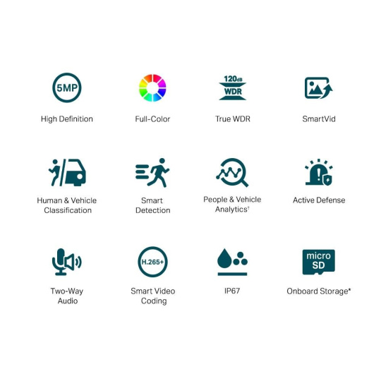 - Aktívna obrana: Okamžite varujte potenciálnych votrelcov zvukom a svetlom v prípade abnormálnych udalostí.
