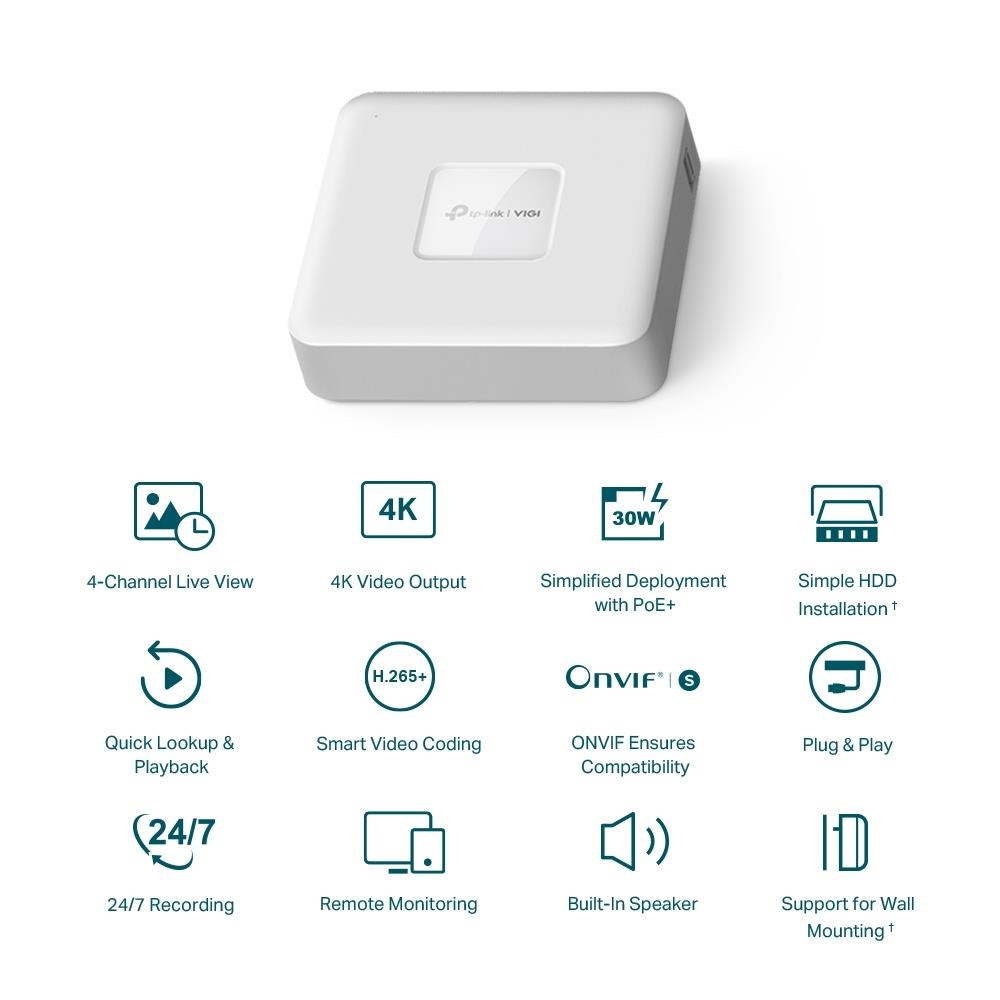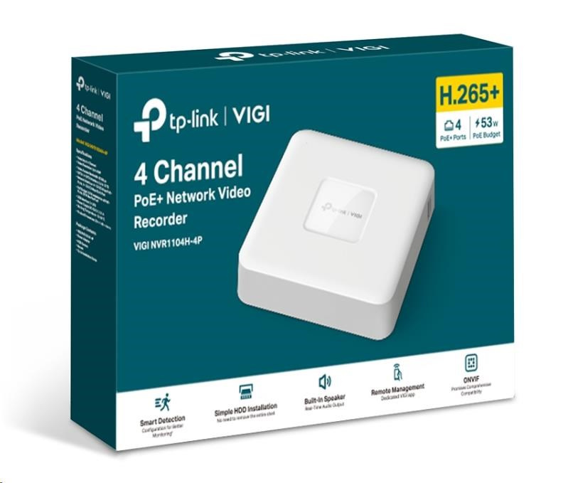 TP-Link VIGI NVR1104H-4P, videorekordér, 4 channels, 4xPoE, 1x100Mb/s LAN, 1xVGA,1xHDMI,2xUSB2.0