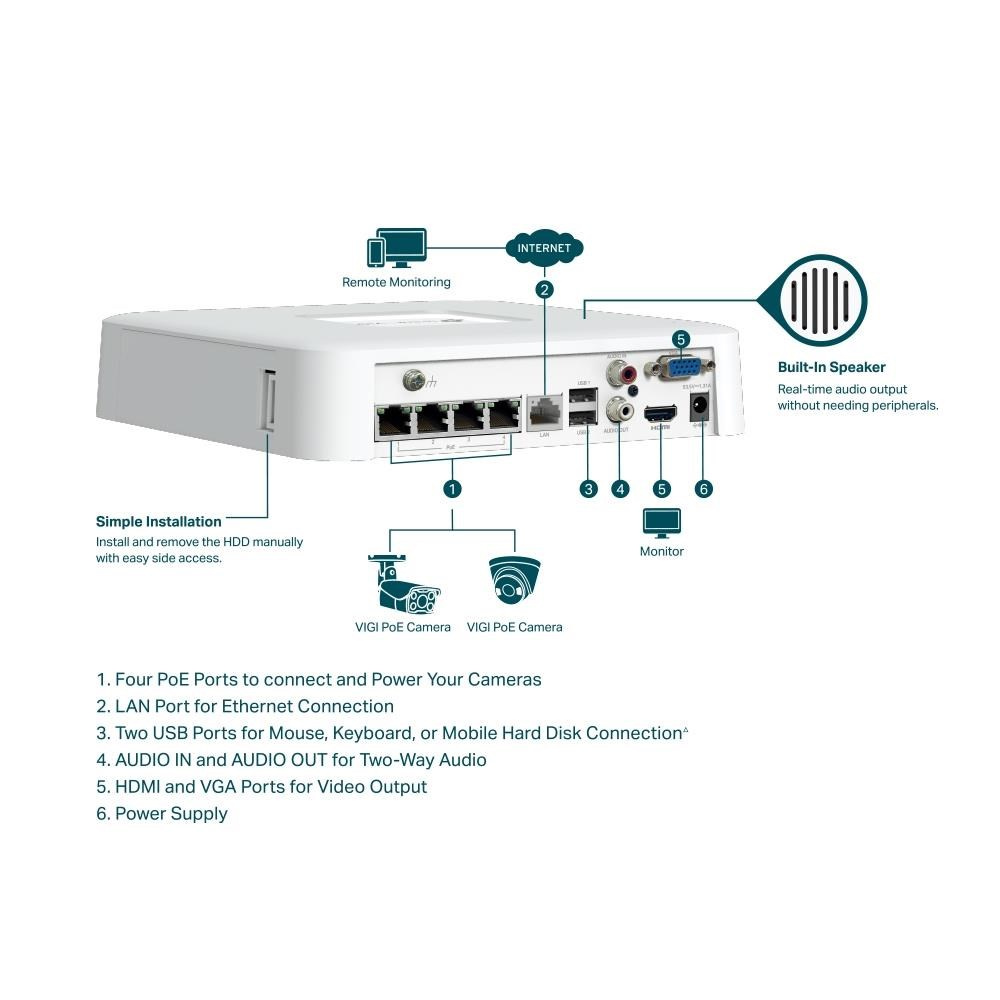 .TP-Link VIGI NVR1104H-4P, videorekordér, 4 channels, 4xPoE, 1x100Mb/s LAN, 1xVGA,1xHDMI,2xUSB2.0