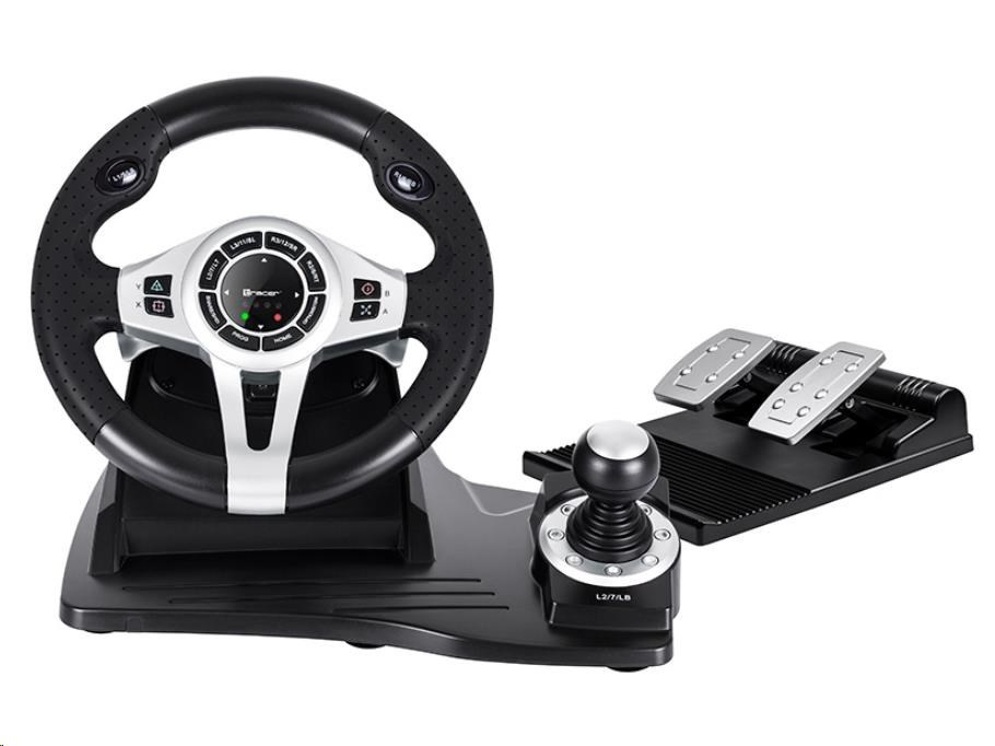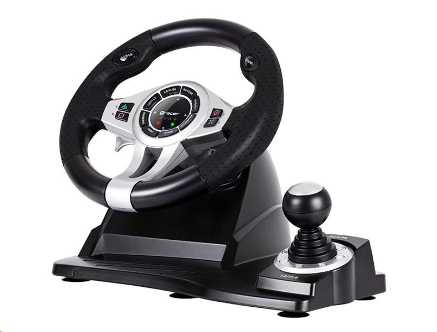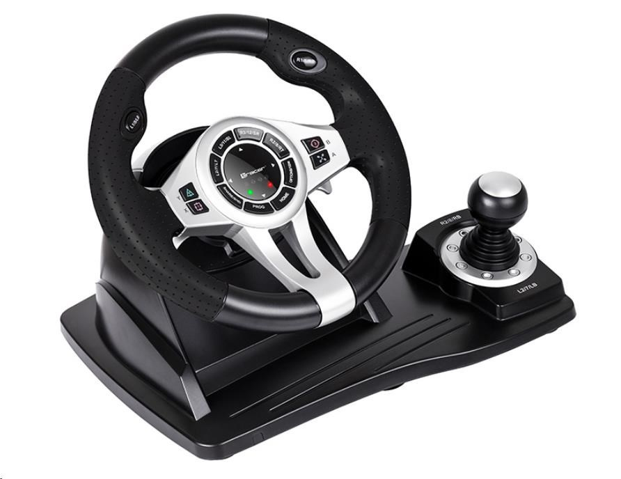Automobilové preteky sú vaším živlom? Nástupte do preteku s volantom TRACER Roadster a nechajte svojich protivníkov za sebou. Vysoko kvalitné volantom TRACER Roadster je kompatibilné ako s konzolami PS3 / PS4 / Xbox One, tak s PC. Volant pracuje veľmi ticho a plynulo. Prevodovka a samostatný modul s brzdovými a plynovými pedálmi oživí vaše riadiace centrum, čo umožňuje rýchlu reakciu, zrýchlenie aj pohodlné brzdenie a radenie. Vaša jazda bude rovnako dynamická, ako by ste sedeli za volantom skutočného závodného vozidla. Uhol otáčania 270 stupňov vám umožní plne sa dostať do preteku. Zariadenie je možné pripevniť k zemi pomocou prísaviek, čo zaisťuje stabilitu volantu aj pri tých najdivokejších pretekoch. Špičkové materiály herného volantu Roadster z neho robia spoľahlivé a veľmi odolné zariadenie. Tlačidlá zodpovedné za manévre a 8-pásmový analógový D-pad boli zabudované do volantu, aby umožňovali rýchly a pohodlný prístup. Užívajte si realistický herný zážitok a pohodlie pretekárskeho kola. Volant potiahnutý perforovanou gumou zabraňuje pohybu zariadenia v rukách, keď sa rútime dráhou. Štyri LED indikátory na volante pomáhajú udržať kontrolu nad zrýchlením, bez toho aby ste museli spúšťať oči zo stopy.
