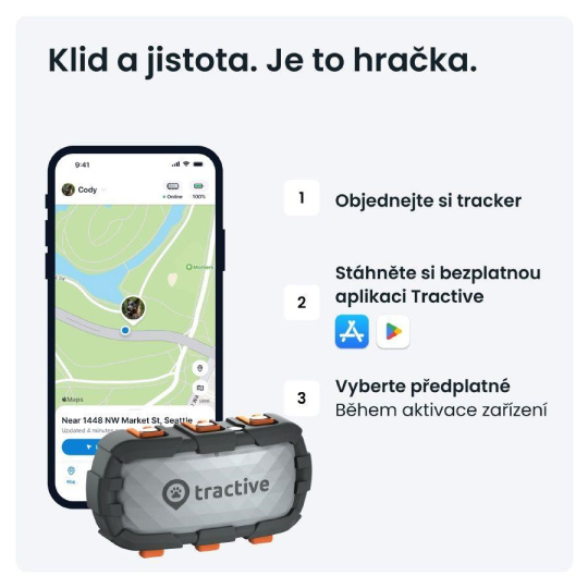 Základná aplikácia Tractive GPS Pet Finder pre smartfóny a tablety so systémom iOS, Android a Windows. Minimálne požiadavky na verzie systémov sú iOS 11 a Android 5.0.