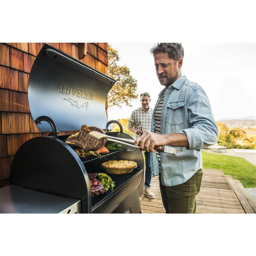 Vlastnosti grilu Traeger zahŕňajú všestranný teplotný rozsah od 165 °F do 500 °F, ideálny na uzení, pečenie, grilovanie aj BBQ, s rýchlym zahrievaním a konštantnou reguláciou teploty vďaka napätiu 120 V AC a výkonom 95 W. Vďaka WiFIRE® pripojeniu a integrovanému senzoru peliet môžete sledovať varenie a hladinu peľ odkiaľkoľvek pomocou aplikácie Traeger. Ponúka veľkú varnú plochu 1651 cm2 na dvoch radoch porcelánom potiahnutých oceľových roštov a je navrhnutý s izolovanou konštrukciou s dvojitou stenou na zníženie kolísania teploty. Súčasťou je aj sonda na mäso Traeger pre jednoduchú kontrolu vnútorných teplôt, funkcia Super Smoke na vylepšenie chuti drevného uzení a pohodlné čistenie zásobníka na rýchlu výmenu peliet. Gril sa pripája k elektrickej siete pomocou priloženého 6 ft D2 NEMA napájacieho kábla.