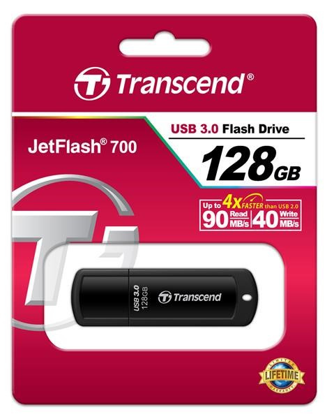 TRANSCEND Flash disk 128GB JetFlash®700, USB 3.0 (R:90/W:40 MB/s) čierna
