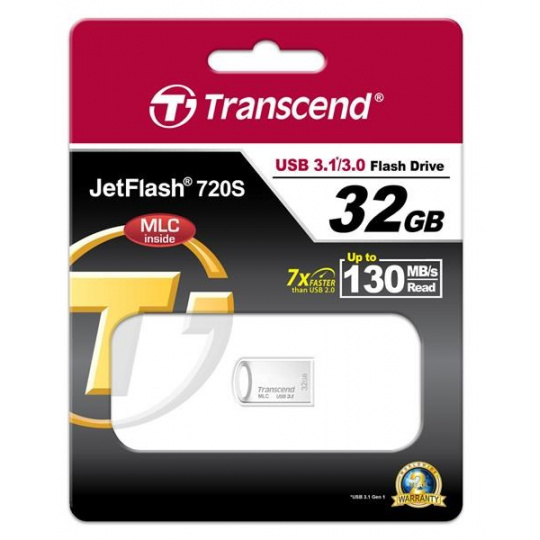 TRANSCEND Flash disk 32GB JetFlash®720S, USB 3.1, riešenie MLC (R:130/W:45 MB/s) striebro