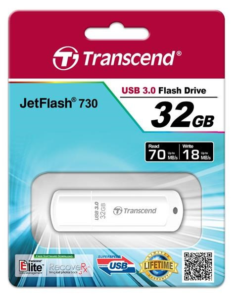 TRANSCEND Flash disk 32GB JetFlash®730, USB 3.0 (R:70/W:18 MB/s) biela