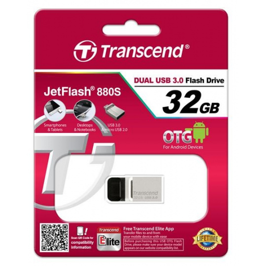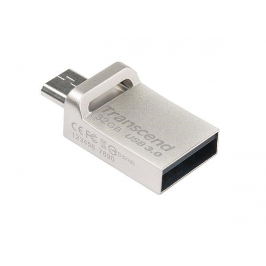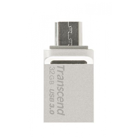 TRANSCEND Flash disk 32GB JetFlash®880S, USB 3.0/micro USB (R:90/W:20 MB/s) strieborná