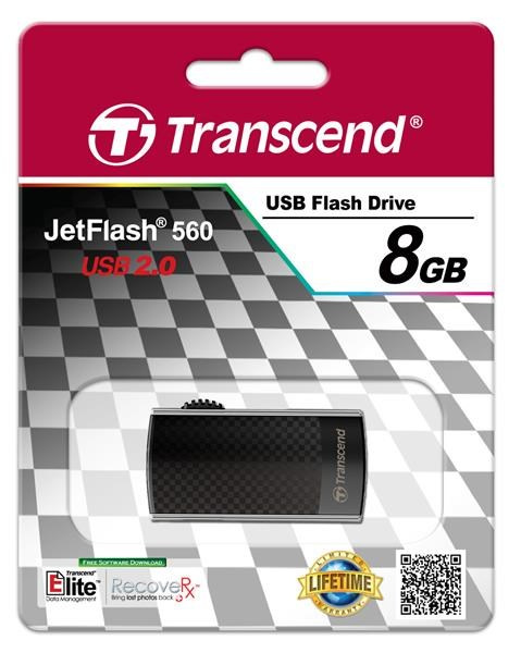 TRANSCEND Flash disk 8GB JetFlash®560, USB 2.0 (R:18/W:4 MB/s) čierna/strieborná