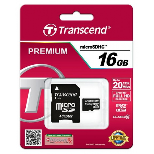 Karta TRANSCEND MicroSDHC 16 GB triedy 10 + adaptér
