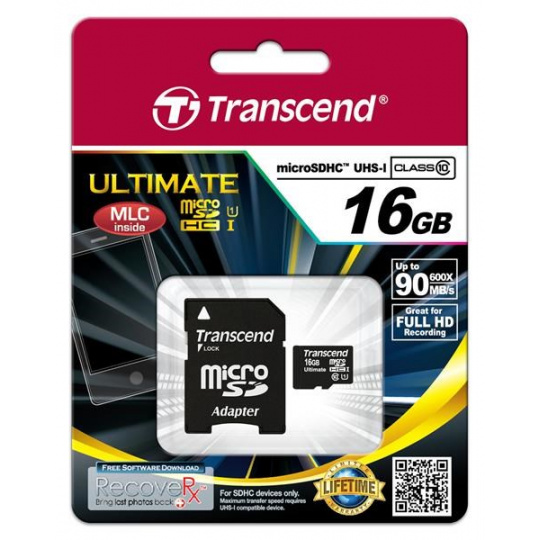 Karta TRANSCEND MicroSDHC 16GB Ultimate, Class 10 UHS-I 600x, MLC + adaptér