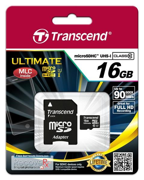 Karta TRANSCEND MicroSDHC 16GB Ultimate, Class 10 UHS-I 600x, MLC + adaptér