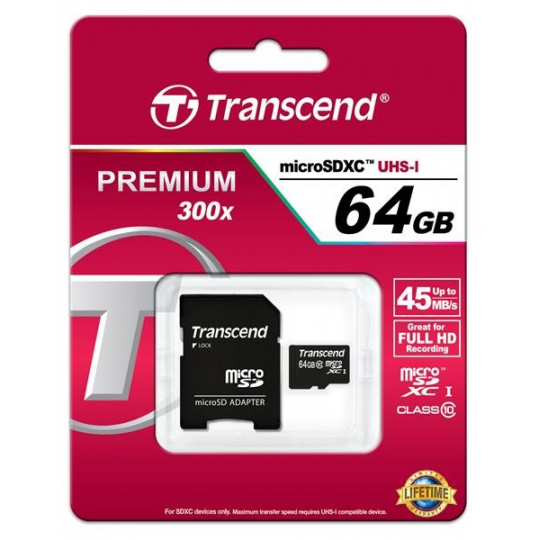 Karta TRANSCEND MicroSDXC 64 GB Class 10, UHS-I (45 MB/s)
