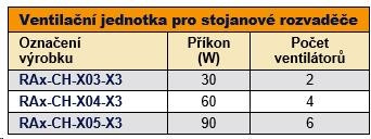 RAB-CH-Xxx-X3, RAC-CH-Xxx-X3 Tieto ventilačné jednotky sú navrhnuté špeciálne pre skrine montované do stojana. Montujú sa podľa potreby do podlahy, krytu alebo dverí rozvádzača. Ventilačná jednotka pre stojanové rozvádzače - inštaluje sa do uzáveru z vonkajšej strany rozvádzača, do základne z vnútornej strany rozvádzača. Pri inštalácii do základne skrine sa musí použiť montážny rám spodnej ventilačnej jednotky - RAx-CH-Xxx-X1, ktorý sa inštaluje pomocou obojstrannej lepiacej pásky. Odporúčame tiež podstavec na prívod vzduchu pod rozvádzač. Nastavenie teplotného rozsahu: bimetalový termostat Nominálne napätie (V/Hz): 230/50-60..