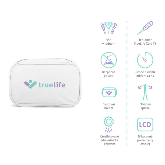 Súčasťou súpravy je aj digitálny kontaktný teplomer TrueLife Care T3, ktorý vám pomôže monitorovať zdravie vášho dieťaťa.