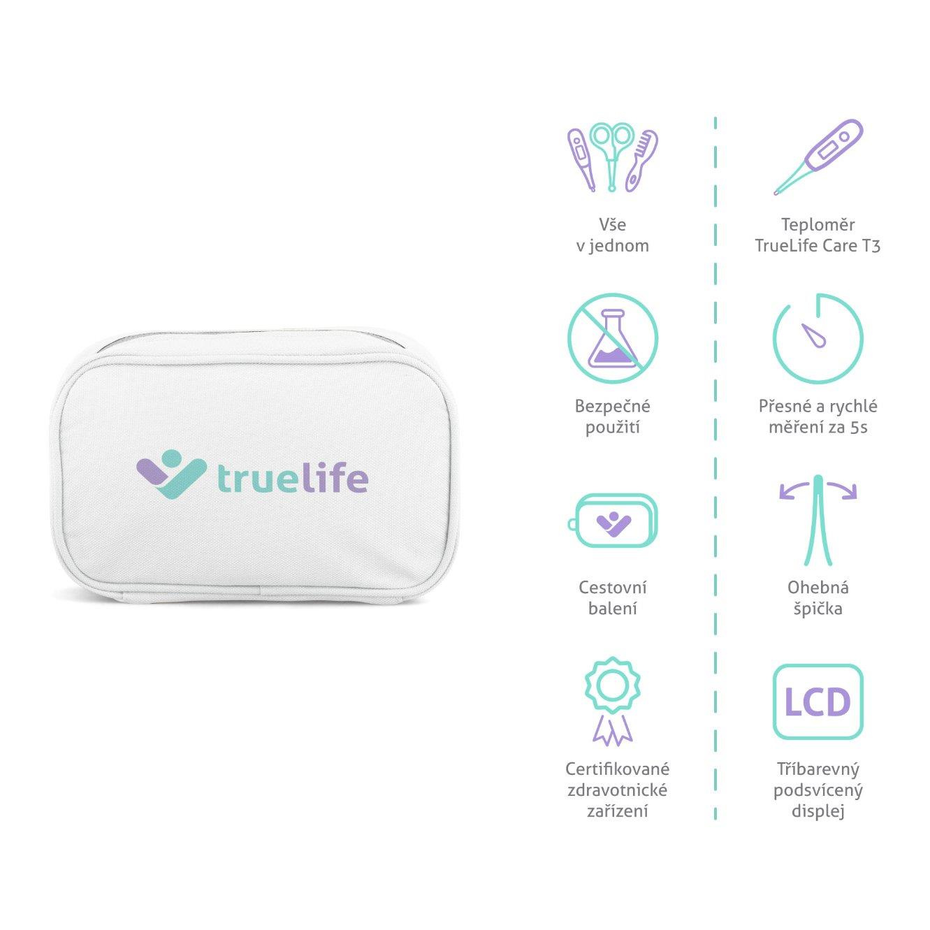 Súčasťou súpravy je aj digitálny kontaktný teplomer TrueLife Care T3, ktorý vám pomôže monitorovať zdravie vášho dieťaťa.