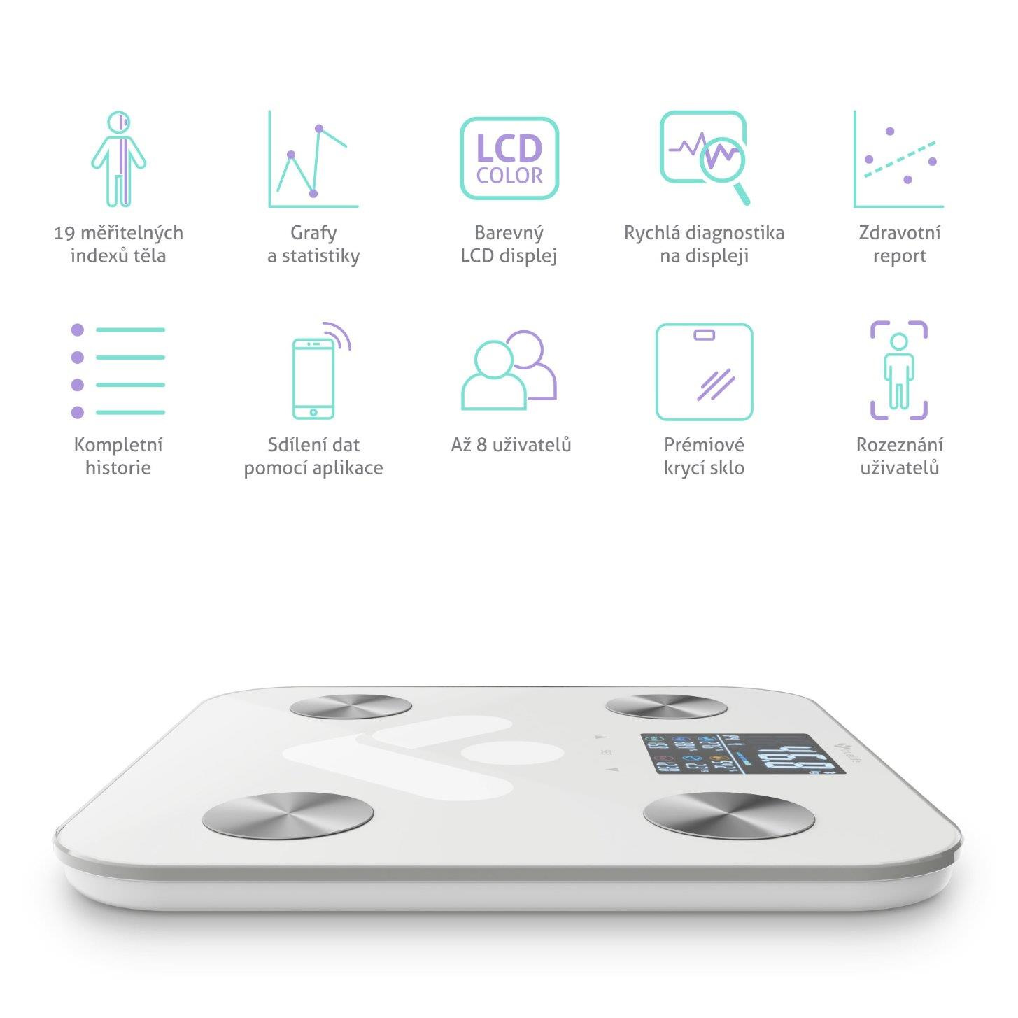 Váha si dokáže zapamätať údaje až 8 používateľov, ktorí tak môžu sledovať a porovnávať vlastnú históriu váženia.