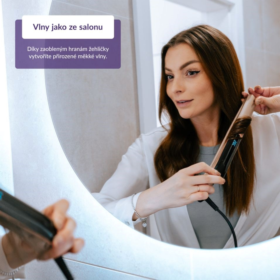 Vďaka zaobleným okrajom možno žehličku pohodlne používať aj na vytváranie mäkkých a pružných vlniek.