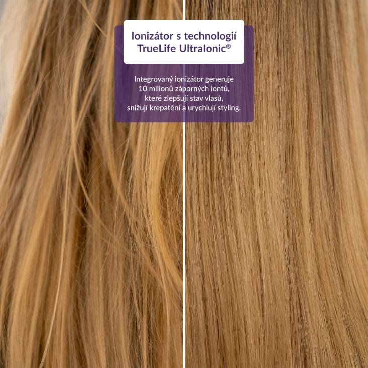 Zoznámte sa s novou kráľovnou vašej kúpeľne pre rýchly a prirodzený styling, žehličkou na vlasy TrueLife HairIron N3 s veľkým LED displejom. Vlasy narovná s maximálnou starostlivosťou a zanechá ich také hebké, že sa ich budete chcieť stále dotýkať. Na prvý pohľad zaujme svojím dizajnom so zaoblenými hranami, ktoré umožňujú aj tvorbu vlniek. Ešte viac si vás získa luxusný keramický povrch nahrievacích doštičiek, ktoré sa rýchlo zahrievajú, udržiavajú teplo rovnomerne rozložené, čím chránia vlasy pred poškodením a vysušením a dodávajú im dokonalý lesk. Dokonalý účes a vyživenejšie vlasy zabezpečí ionizátor s technológiou TrueLife UltraIonic®, vďaka ktorej sa vlhkosť z vlasov rýchlejšie odparí aj pri nižšej teplote. Žehlička ponúka až 12 možností nastavenia teploty, takže si starostlivosť môžete prispôsobiť presne na mieru svojim vlasom. K pohodlnému používaniu prispieva aj kábel otočný o celých 360° a zámok, ktorý uľahčuje skladovanie, napríklad na cestách.